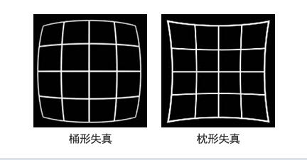表示通過鏡頭成像的圖像發(fā)生歪曲的狀態(tài)。事實(shí)上不存在形狀完美的鏡頭。因此,雖然從理論上來說,直射光通過鏡頭后會(huì)沿著直線傳播,而實(shí)際上光通過鏡頭后會(huì)向外側(cè)或者內(nèi)側(cè)歪曲。前者稱為「桶形失真」,后者稱為「枕形失真」。一個(gè)鏡失真的參數(shù)以百分比表示。