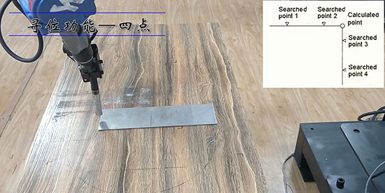 測量平面焊縫的兩個點(diǎn),計算焊縫的偏移,將偏差補(bǔ)償?shù)绞窘厅c(diǎn)上。
