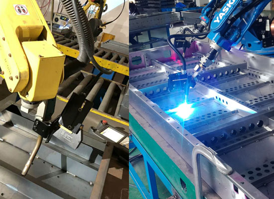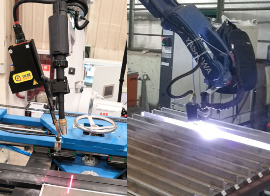 激光前置掃描焊縫位置,并記錄在系統(tǒng)里面,機(jī)器人行走到測量位置時,糾正偏差。