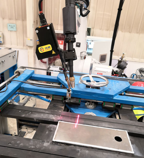創(chuàng)想機(jī)器人焊縫跟蹤器原理是, 固定激光視覺(jué)傳感器在焊槍正前方, 通過(guò)直接觀察焊槍與焊縫中心線(xiàn)的位置關(guān)系, 提取偏差信息, 輸出糾偏控制電壓。