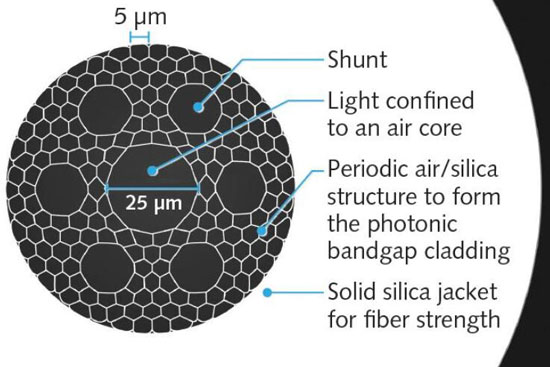 中空光纖使用諸如光子帶隙或反諧振之類的現(xiàn)象將光引導(dǎo)通過空氣填充的芯。經(jīng)過多年的研究,這種光纖的光損耗已大大降低。這種光纖的一大優(yōu)點是更高的數(shù)據(jù)傳輸速度,因為光在空氣中的傳播比在玻璃中的傳播快得多。今年,新推出了一種光子帶隙空心光纖,該光纖的市場特別重視高速傳輸高頻要求。 該光纖可以替代微波塔和數(shù)據(jù)中心之間“最后一英里”連接中的微波傳輸。與玻璃纖維相比,它的速度優(yōu)勢使數(shù)據(jù)交換之間的間隔時間縮短了寶貴的毫秒。