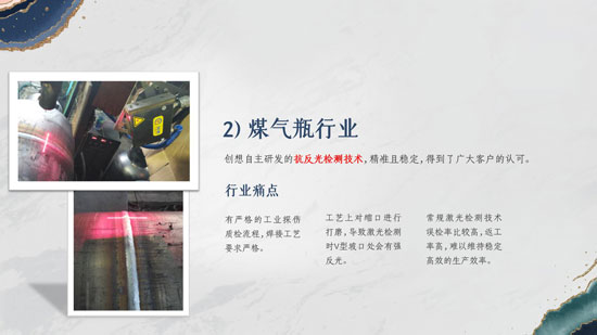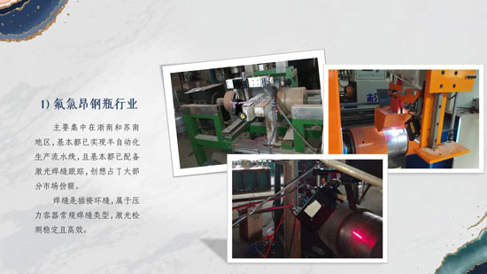 針對(duì)環(huán)縫焊接行業(yè)的各種焊偏問題,我們創(chuàng)想公司推出一款產(chǎn)品叫焊縫跟蹤器,它能實(shí)時(shí)檢測焊縫位置并且引導(dǎo)焊槍對(duì)準(zhǔn)焊縫進(jìn)行焊接,現(xiàn)在已經(jīng)廣泛應(yīng)用于以下這些行業(yè),口碑優(yōu)良。