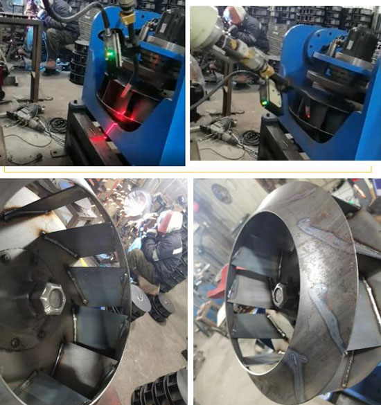 由于風機機殼與葉輪的焊接質量直接決定的風機的質量和美觀,傳統(tǒng)的自動焊接設備因為無法實時跟蹤焊縫,所以無法實現自動焊接,基本是依靠人工焊接。
