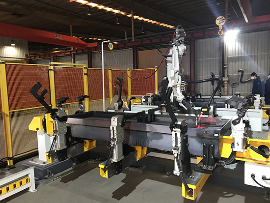 前后板的焊接主要用的是機(jī)器人搭配激光跟蹤系統(tǒng)的尋位功能就可以解決;側(cè)板主要以長(zhǎng)焊縫為主,主要用到的是機(jī)器人搭配焊縫跟蹤系統(tǒng)和外部軸協(xié)同的實(shí)時(shí)跟蹤功能。目前這些解決方案我們創(chuàng)想都是可以實(shí)現(xiàn)的。