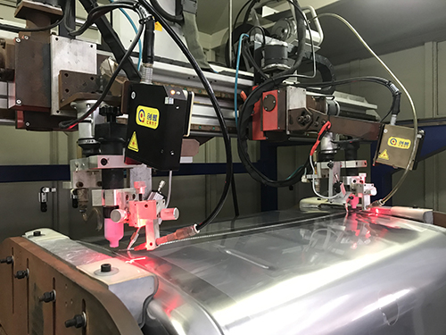 某鋁合金油箱生產(chǎn)自動(dòng)化生產(chǎn)線,材質(zhì)為鋁合金,焊接工藝為MIG/MAG。加油口、防油口焊接和外環(huán)縫焊接激光跟蹤,創(chuàng)想跟蹤加入此生產(chǎn)線: