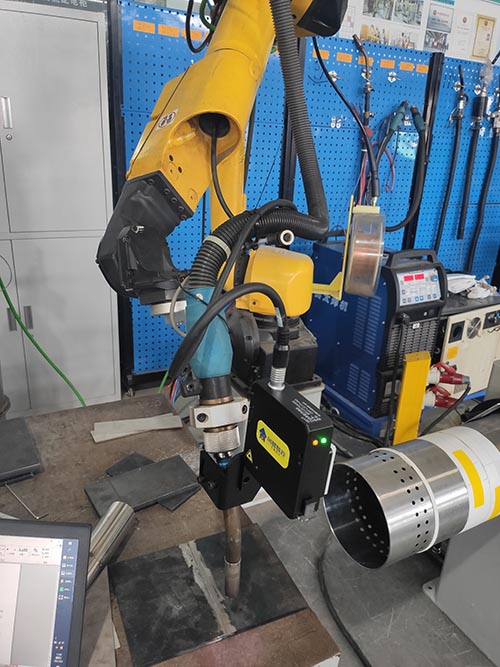 焊縫跟蹤系統(tǒng),主要功能是在焊機(jī)專機(jī)或是焊接機(jī)器人的焊槍前,加入一組專用傳感器,針對(duì)焊接形狀和路線進(jìn)行,進(jìn)行跟蹤,矯正以及姿態(tài)調(diào)整,從而完成焊接工作。