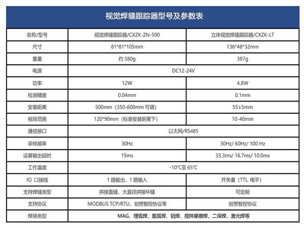 創(chuàng)想智控的視覺焊縫跟蹤器也分為兩款,也就是立體視覺焊縫跟蹤器CXZK-LT和視覺焊縫跟蹤器CXZK-AN-500,不同的型號,特點(diǎn)和作用自然也不相同,下面就介紹兩款產(chǎn)品不同的特點(diǎn)。