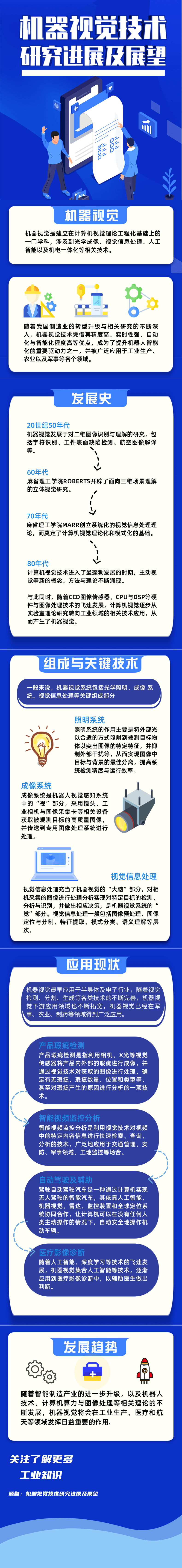 機(jī)器視覺(jué)是建立在計(jì)算機(jī)視覺(jué)理論工程化基礎(chǔ)上的一門(mén)學(xué)科,涉及到光學(xué)成像、視覺(jué)信息處理、人工智能以及機(jī)電一體化等相關(guān)技術(shù)。隨著我國(guó)制造業(yè)的轉(zhuǎn)型升級(jí)與相關(guān)研究的不斷深入,機(jī)器視覺(jué)技術(shù)憑借其精度高、實(shí)時(shí)性強(qiáng)、自動(dòng)化與智能化程度高等優(yōu)點(diǎn),成為了提升機(jī)器人智能化的重要驅(qū)動(dòng)力之一,并被廣泛應(yīng)用于工業(yè)生產(chǎn)、農(nóng)業(yè)以及軍事等各個(gè)領(lǐng)域。
